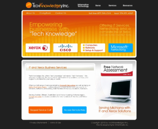 At left is a screenshot of the Techknowledgeyinc.com web design. This IT firm serves Michiana including Goshen, Elkhart, South Bend, Warsaw, and broader North Central Indiana.