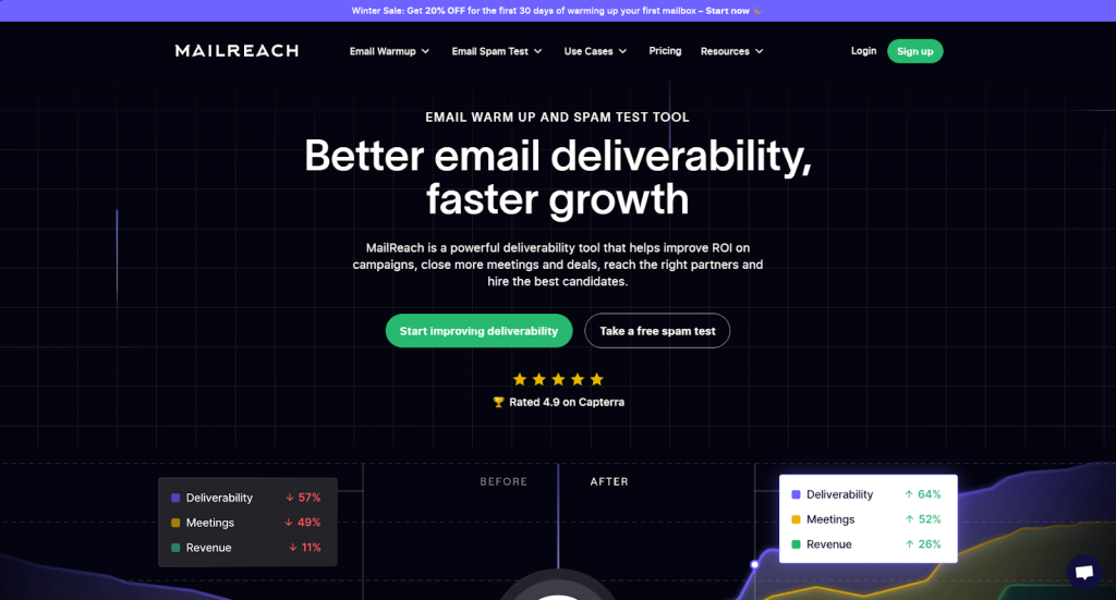 Verdict: MailReach works well for data-driven teams that need ESP-specific reputation scores and detailed deliverability insights. Keep in mind that it’s a warmup-only tool, so you’ll need to pair it with a separate platform for actual cold email campaigns and outreach management.